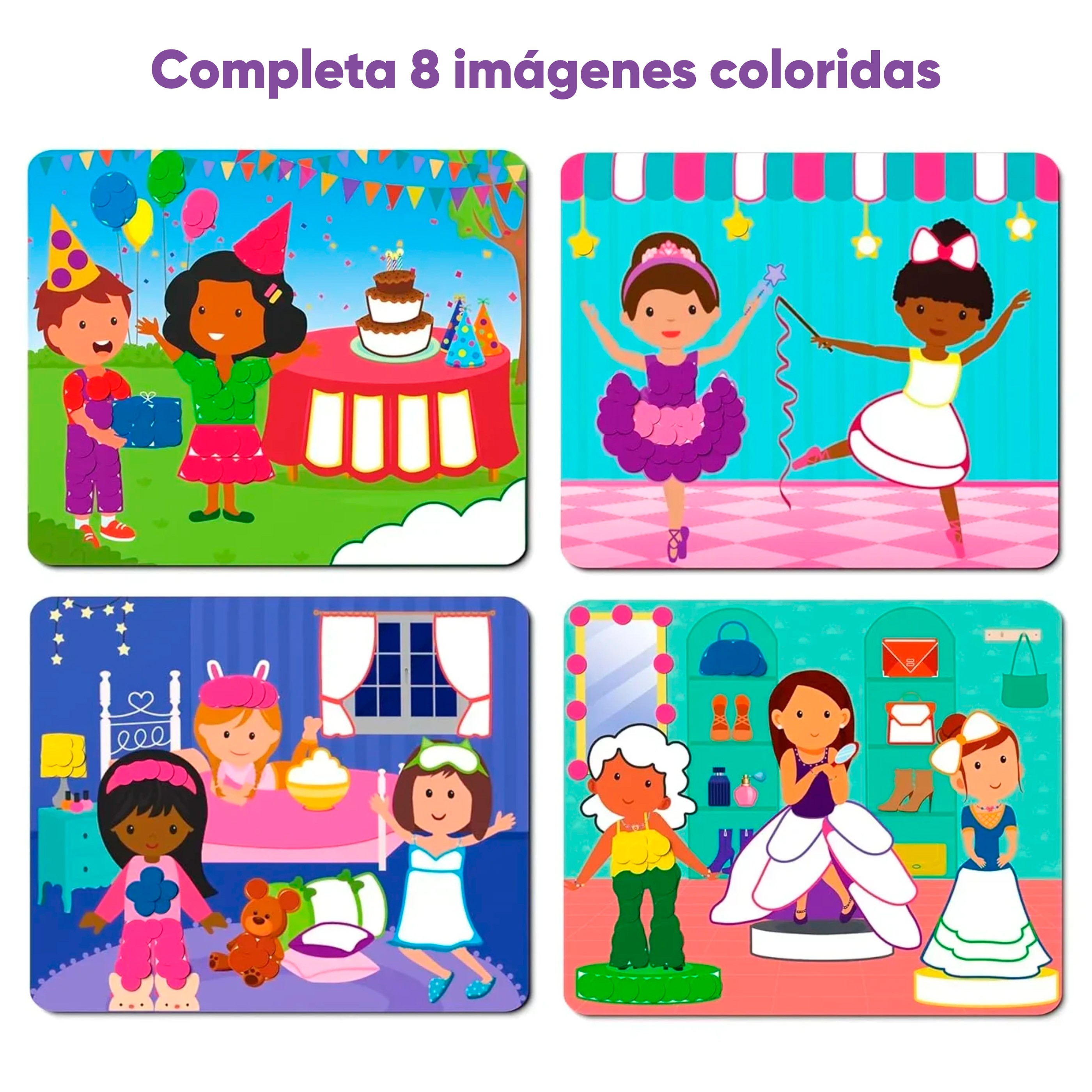 ¡Dejá volar la imaginación con ¡Puntúalo!: Unicornios y Princesas! Una encantadora actividad artística con pegatinas diseñada para mantener a los niños entretenidos y creativos, tanto en casa como fuera de ella. Con más de 500 pegatinas de colores fáciles de despegar, los pequeños podrán completar 8 mágicas escenas de unicornios y princesas, desarrollando su motricidad fina y concentración mientras se divierten.